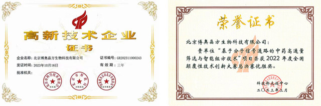 目前已獲得國家高新技術企業、創新型中小企業、科技型中小企業、雙軟認證企業、AAA級信用企業、博士后工作站等資質。并獲得科技部2022年全國顛覆性技術創新大賽總決賽最高獎,入選中華中醫藥學會2022年度“中醫藥十大學術進展”。具有發明專利21項,軟件著作權21項。