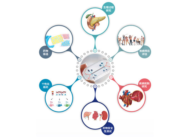 以微流控芯片為核心的器官芯片,具有多個模擬人體組織和器官環境的細胞培養分區,用于在體外模擬包括有多種活體細胞、功能組織界面、生物流體和機械力刺激等復雜因素的組織器官微環境,反映人體組織器官的主要結構和功能特征。目前已構建肝臟芯片、小腸芯片、血管分支芯片、腫瘤免疫芯片等,未來可廣泛用于生理過程和疾病機制研究,用于藥物篩選、個性化用藥和藥物的安全性測試,也可幫助實現疾病的預后評估。