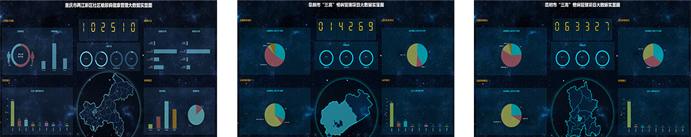 社區健康篩查與健康管理大數據系統旨在基于社區建立以慢病健康管理為核心,結合移動健康物聯網和云計算技術,建立面向慢病健康預測和干預的端到端應用體系,為政府慢病防控工作提供輔助決策。該系統包括數據采集、數據管理、數據可視化、微信端公眾號,醫師端,健康管理APP等多個系統,并已獲得國家信息安全等級保護第3級備案。(1)數據采集系統通過體檢一體機、目診儀、問卷APP等方式,采集多維健康數據,包括13項生理指標和5項生化指標,以及體質和眼象數據。數據加密后傳輸到云端數據中心。(2)數據管理系統支持健康篩查數據的安全高效存儲和管理,并支持數據報表等功能。(3)數據可視化系統支持提供多維數據透視和展示。系統分為人群基本信息、健康狀況、檢測項目、生活方式和人數分布等五大模塊,可以實時展示人群全部的健康信息。(4)微信端公眾號是支持糖尿病篩查服務的新媒體系統。系統提供了用戶注冊、糖尿病篩查,篩查報告查看(體質、體檢、眼象檢測、基因檢測、并發癥檢測)和咨詢和消息接收等功能。(5)醫師端系統支持在線健康管理服務。醫師和健康管理師使用該系統,可以進行用戶管理、健康篩查信息查看,健康管理在線服務,與用戶即時通訊等。(6)健康管理APP是社區版個人健康管理系統。該系統可以實現用戶健康記錄和測評、健康管理方案推送,健康報告查看、情志調理和體檢預約等。