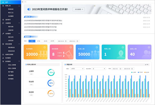 臨床檢驗結果互認信息化平臺建設目標是實現對臨床檢驗機構的室內質控、室間質評數據的自動、實時監管,保證檢測結果的規范化并為臨床結果互認信息化平臺提供支持。其中,室內質控和室間質評數據上報及檢驗質量匯總評價包括基本信息維護、室內質控數據上報、室內質控數據采集及信息反饋、實驗室月度質量分析報告。室內質控和室間質評數據自動采集及質量評價的動態管理包括:臨床檢測設備與本系統數據傳輸接口,實現室內質控數據自動采集功能;基于自動上報數據,實現實驗室質量評價的動態管理功能。